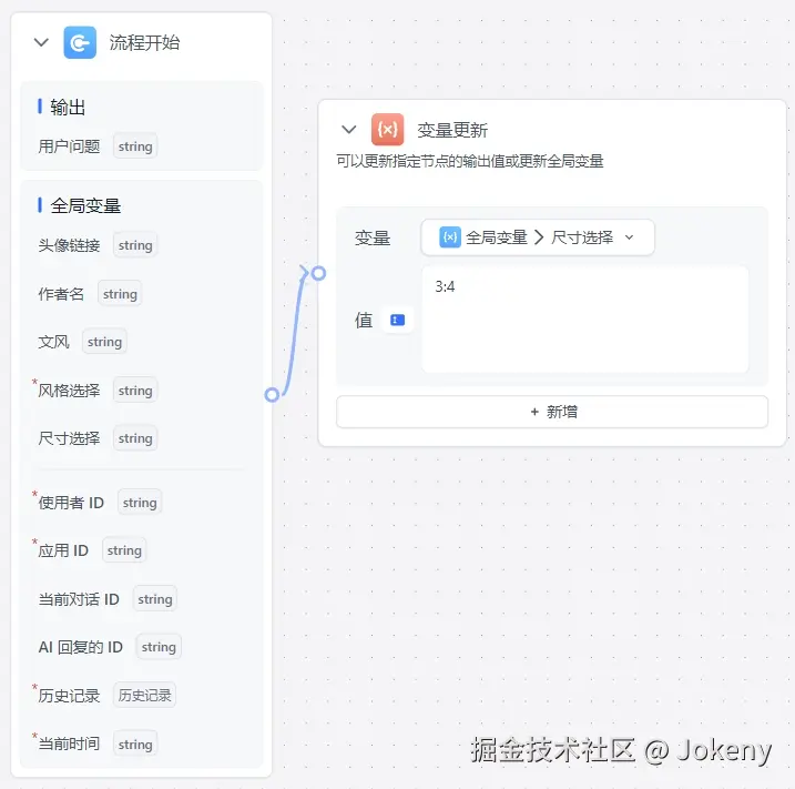 新增【变量更新】节点,将图片尺寸固定为 3:4