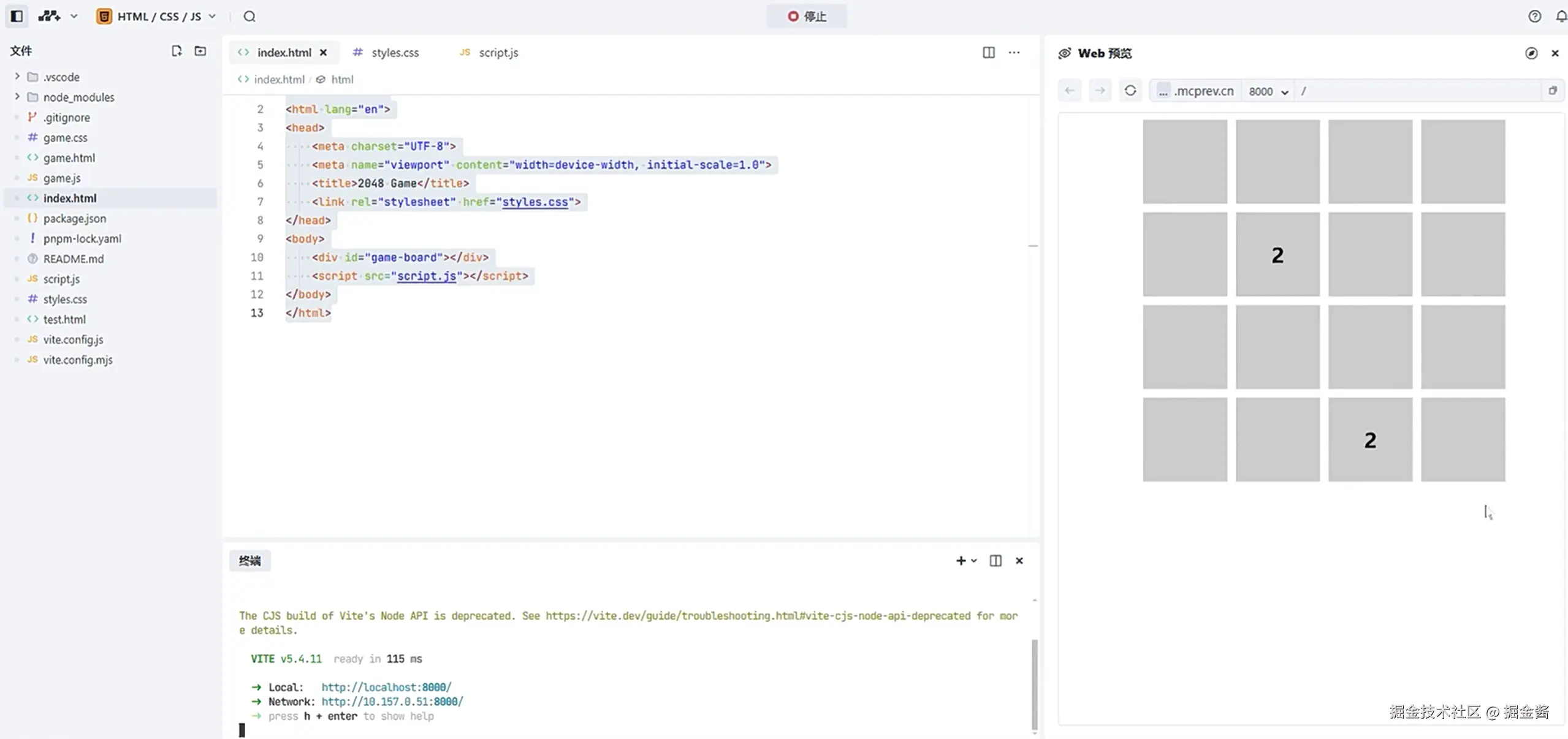 3、2048小游戏