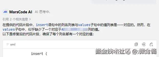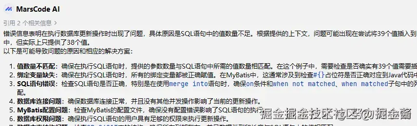 棘手的bug可谓是开发者的“一生之敌”,往往会浪费开发者的宝贵时间,且对个人技术成长的帮助也微乎其微。用户@努力的小雨 借助豆包MarsCode的代码生成、代码补全、错误修复、AI问答等核心功能,快速定位和解决了SQL使用过程中的相关bug,节省了调试时间,提升了工作效率。