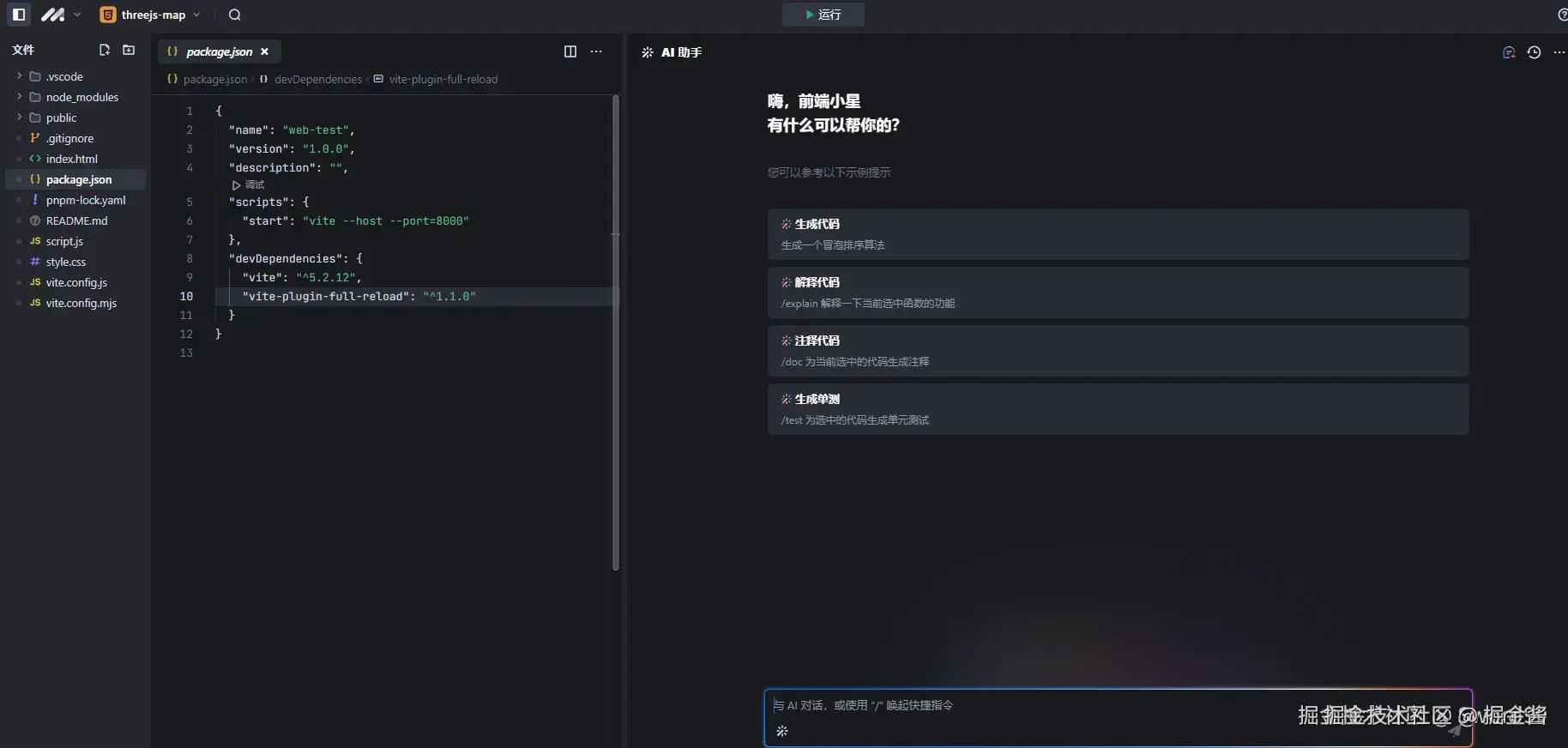 在开发过程中,豆包MarsCode的表现亮眼:初始化模版丰富,方便快速开发;AI交互良好,支持直接生成文件至项目目录;代码提示准确度较高,支持代码保存到本地。