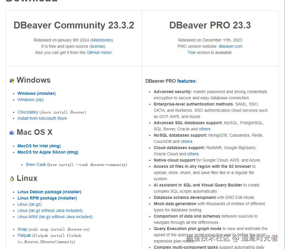 DBeaver是一款免费的跨平台数据库工具,适用于开发人员、数据库管理员、分析师和所有数据处理人员。它支持所有流行的 SQL 数据库,如SQL Server、MySQL、MariaDB、PostgreSQL、SQLite、Apache Family 等。