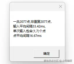 3、再算个点平均间隔16.7ms -- 这个数据也是有意义的,可以用于评估类似书写预测1个点可以提升的性能