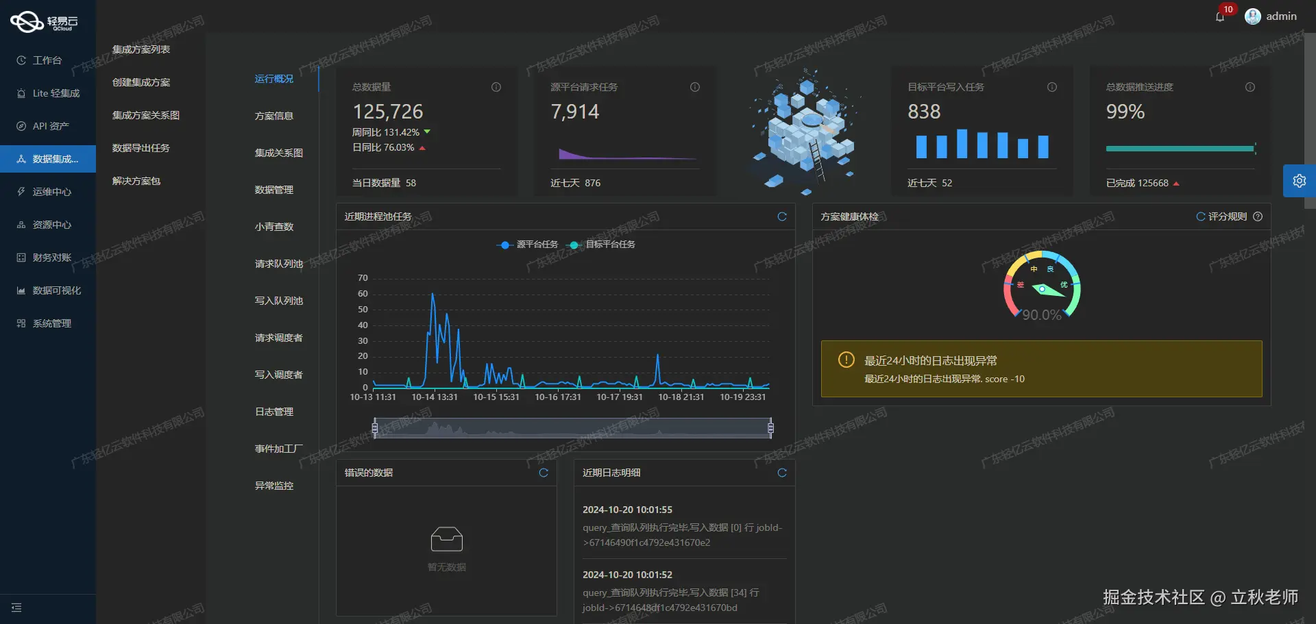 - 实时监控与告警系统:在整个数据集成过程中,实时跟踪任务状态和性能,一旦出现异常情况,系统会立即发出告警通知,从而确保问题能够及时得到解决。
