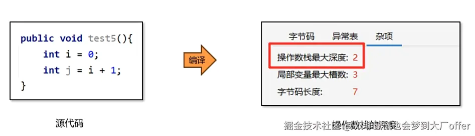 操作数栈是栈帧中虚拟机在执行指令过程中用来存放中间数据的一块区域,他是一种栈式的数据结构,如果一条指令将一个值压入操作数栈,则后面的指令可以弹出并使用该值在编译器就可以确定操作数栈的最大深度,从而在执行时正确的分配内存大小