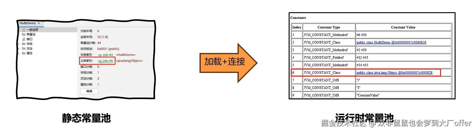 字节码文件中通过编号查表的方式找到常量,这种常量称为静态常量池。当常量池加载到内存中之后,可以通过内存地址快速定位到常量池中的内容,这种常量池称为运行时常量池