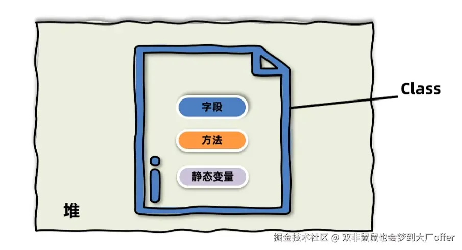 **JDK6**及之前的版本中静态变量存放在方法区中,也就是永久代JDK7及之后版本,静态变量存放到堆中的Class对象,脱离了永久代