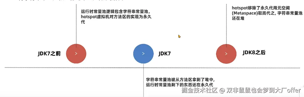 早期,字符串常量池是运行时常量池一部分,随着JDK发展做了拆分