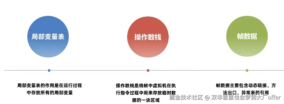 栈帧的组成:局部变量表、操作数栈、帧数据