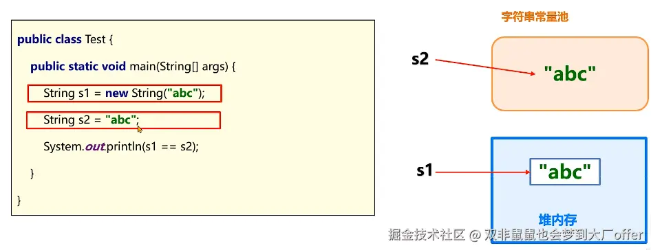JDK7以及之后的版本中,字符串常量池在堆上,所以intern()方法会把第一次遇到的字符串的引用放入字符串常
