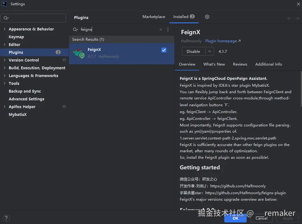市面上并没有很好的IDEA插件支持feign接口的解析以及相对应的远程服务之间跨模块的跳转,因此本人(Halfmoonly)亲自做了一款插件FeignX,并开源出来给大家免费使用。