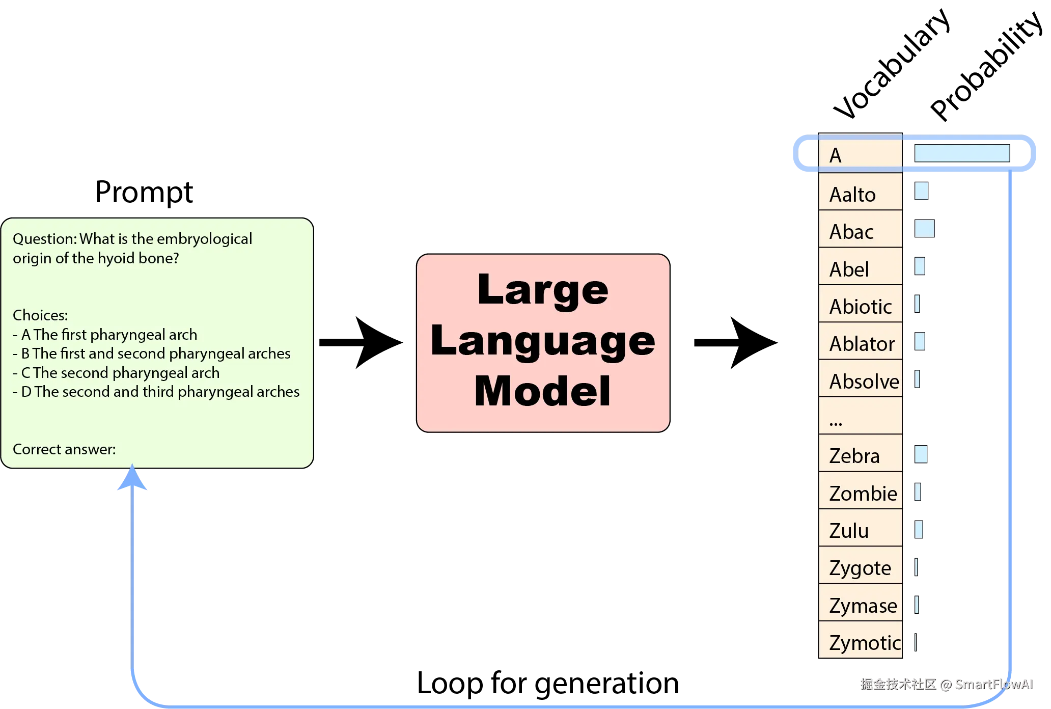 上图呈现了 ChatGPT 或 Hugging Chat 生成答案的流程。