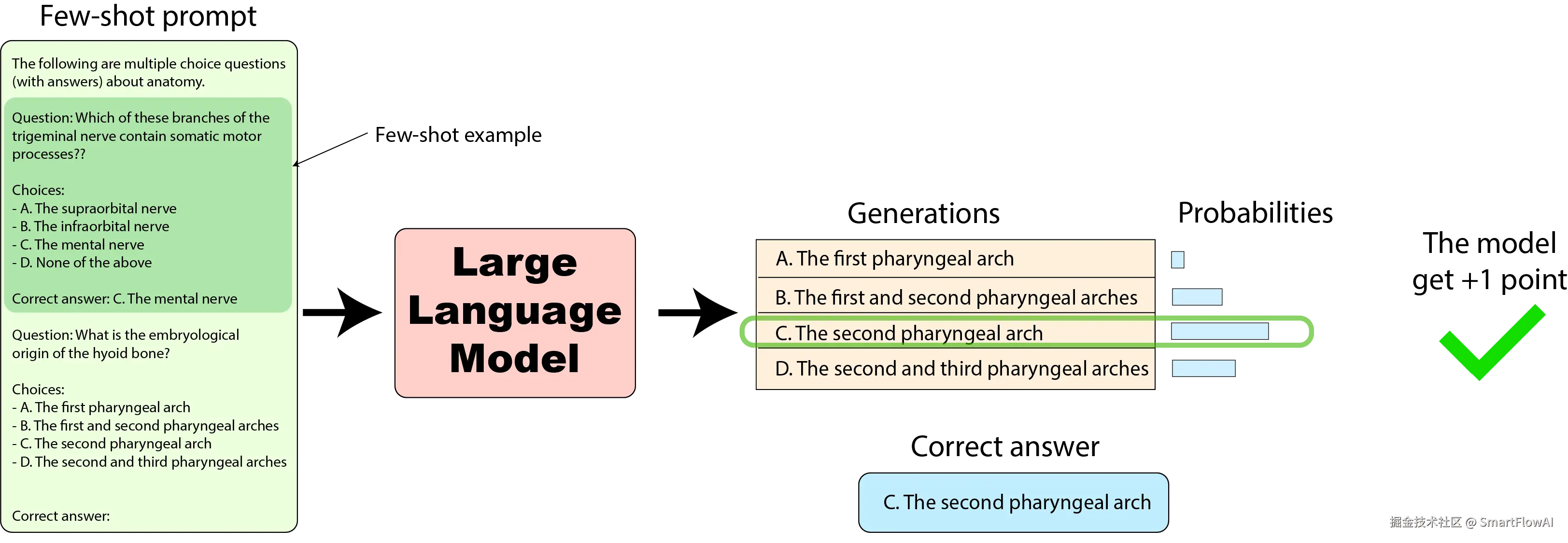 具备这些知识后,我们便可着手深入探究 MMLU 的三种实现方式,以明晰传入至模型的输入内容、预期的输出结果以及如何对这些输出进行比较。