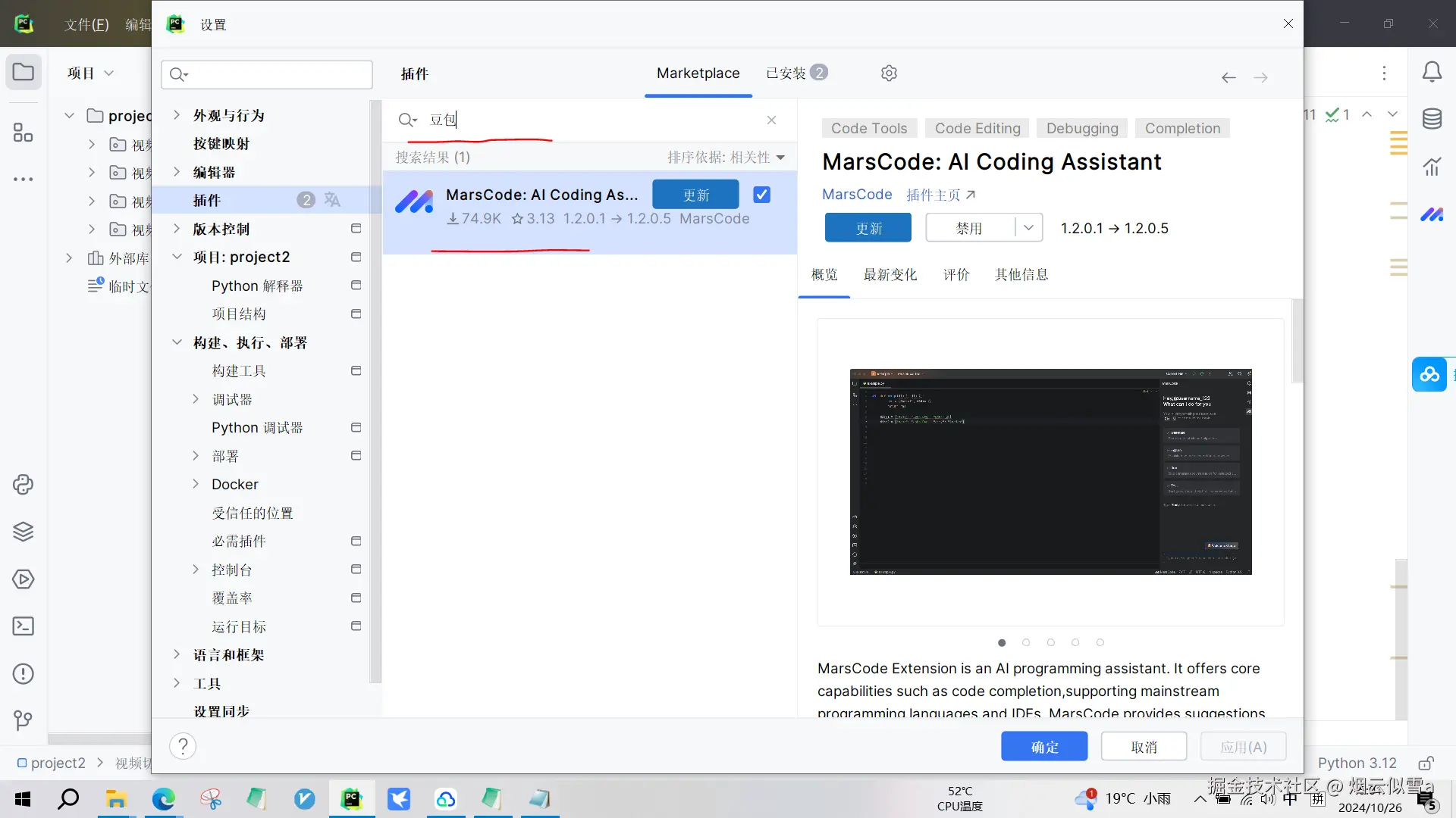 然后直接搜索: 豆包 或者 Marscode 就可以安装了