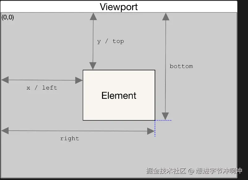 Element.getBoundingClientRect() 方法返回一个 DOMRect 对象,其提供了元素的大小及其相对于视口的位置。