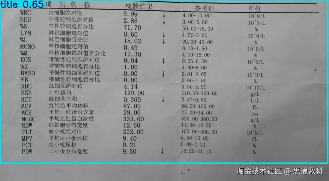 传统的化验单录入多依赖人工操作,手动输入大量数据容易导致录入缓慢和工作积压,尤其是在每日接待患者数量庞大的医院中,录入效率低下直接影响患者就诊时间。智能化验单识别系统利用光学字符识别(OCR)技术和图像处理技术,能够自动将纸质化验单上的信息提取并转换为结构化数据,同时,系统能做到自动判断文字的方向,无需人工干预。系统能够快速完成数据录入,提升医护人员的工作效率,同时也能将精力集中于患者护理和诊断等核心任务。