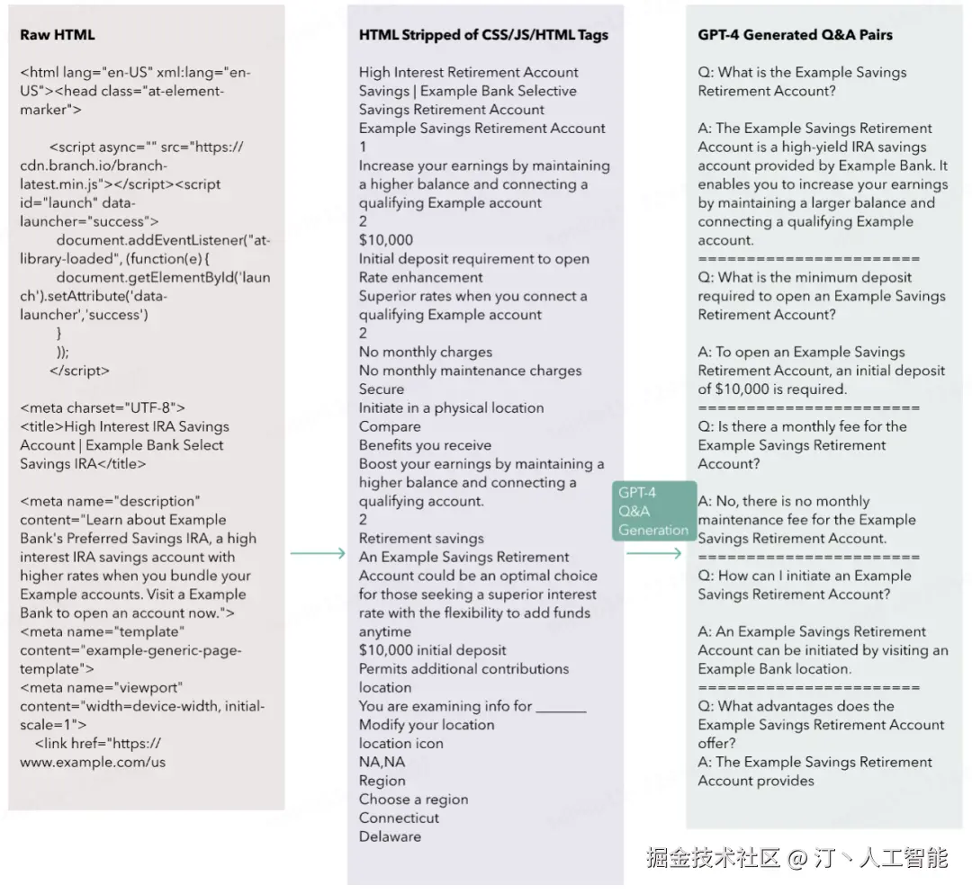 上图展示了对 HTML 提取的信息生成的问答对示例。值得注意的是,提取问答对仍然可能造成一定的数据信息丢失。