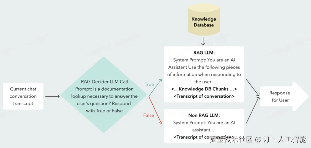 为了降低成本并提高 RAG 的质量,本文开发了一种 RAG 决策模式,因为并非所有查询都需要 RAG 查找。因此,识别何时 LLM 可以独立回答查询而无需外部知识,可以提高效率。一个不太明显的例子是,当回答用户查询所需的所有信息已经存在于最近的对话历史中。在这种情况下,LLM 只需重复或稍微改述之前所说的内容。例如:“你能把你最后的信息翻译成西班牙语吗?” 或 “请像我五岁一样解释最后的信息。” 这两种查询都不需要新的检索,因为 LLM 可以简单地使用其内置功能回答这些查询。