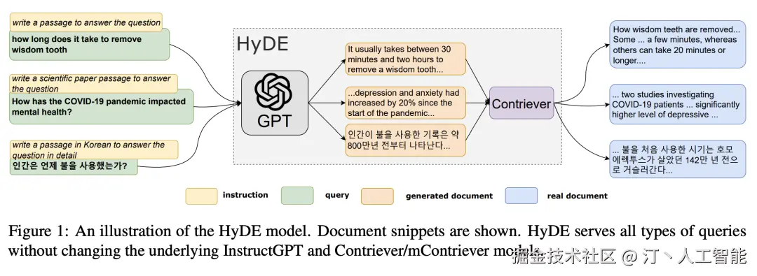 预检索优化策略中提到了查询和文档内容的 embedding 可能存在不对称的问题。通过应用 HyDE,我们还可以在检索阶段实现更大的语义相似性。