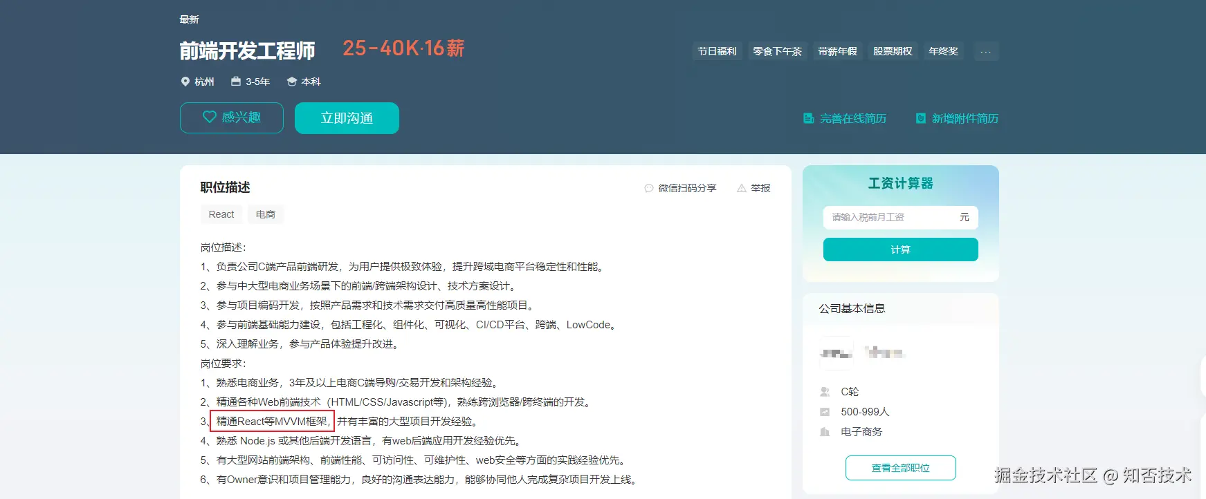 一线城市高薪资的前端职位要求都比较高,其中 React 是必须要掌握的。