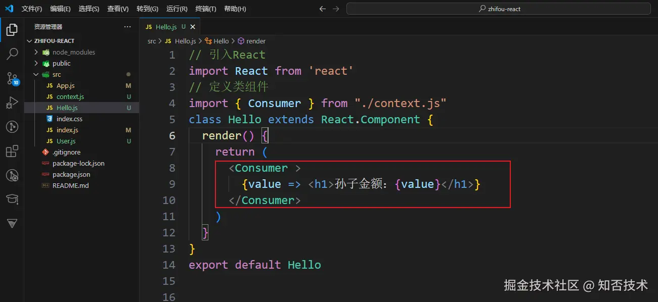 - 后代组件放在 Consumer 里面, 内部是一个函数,这个函数接收一个对象作为参数,参数是Provider 里面提供的值,然后直接使用就可以了。