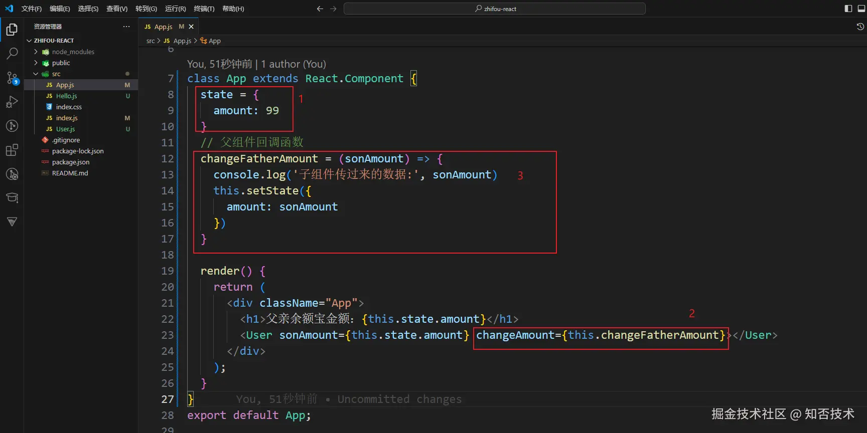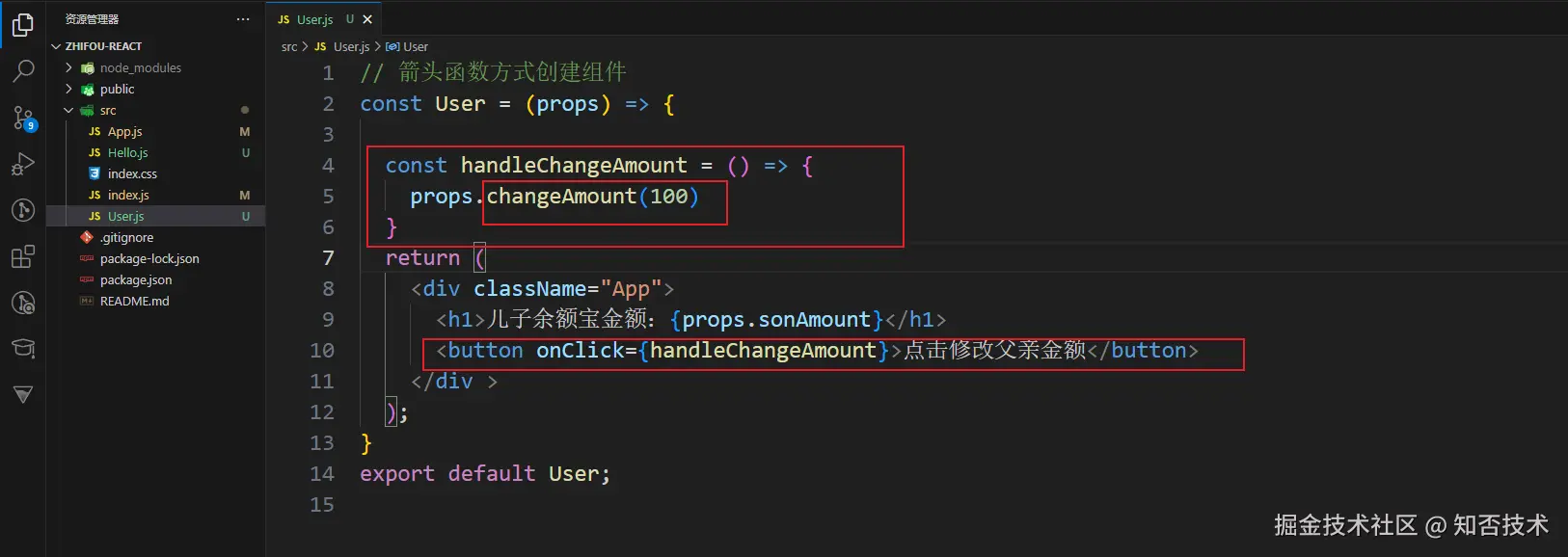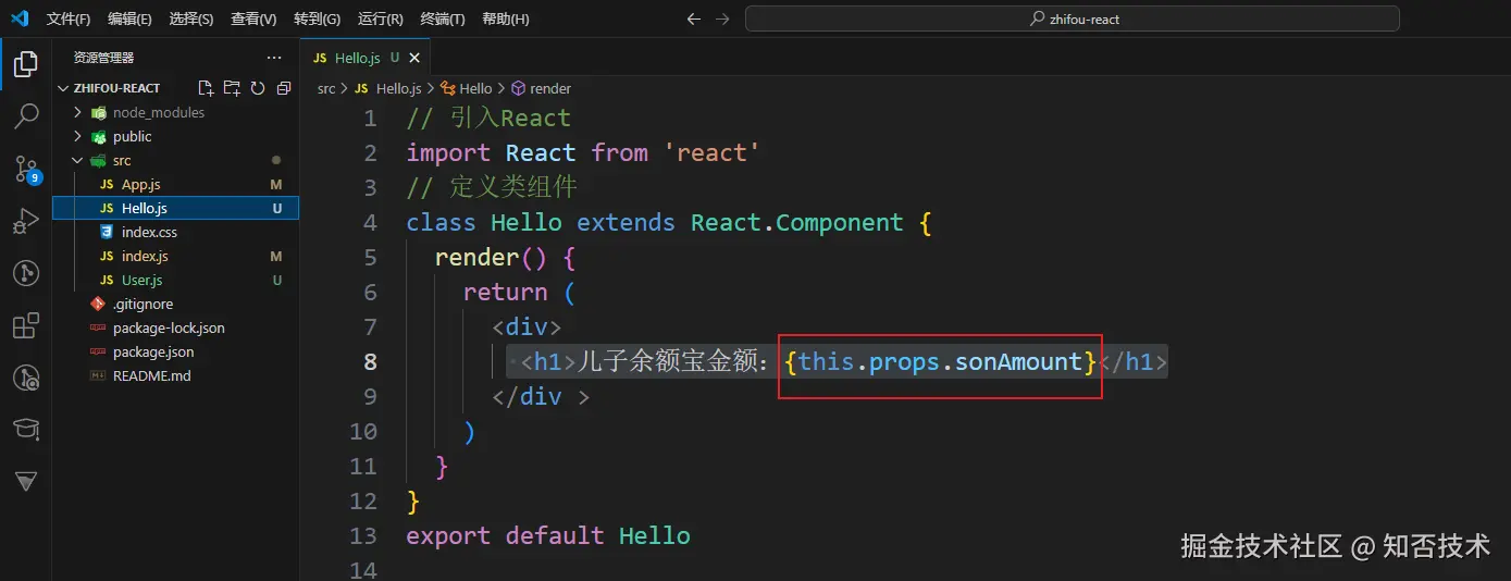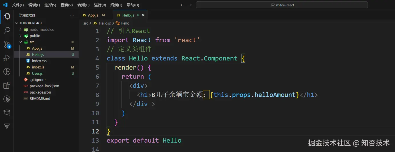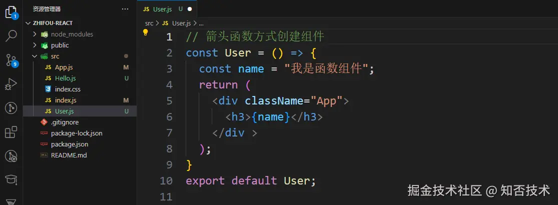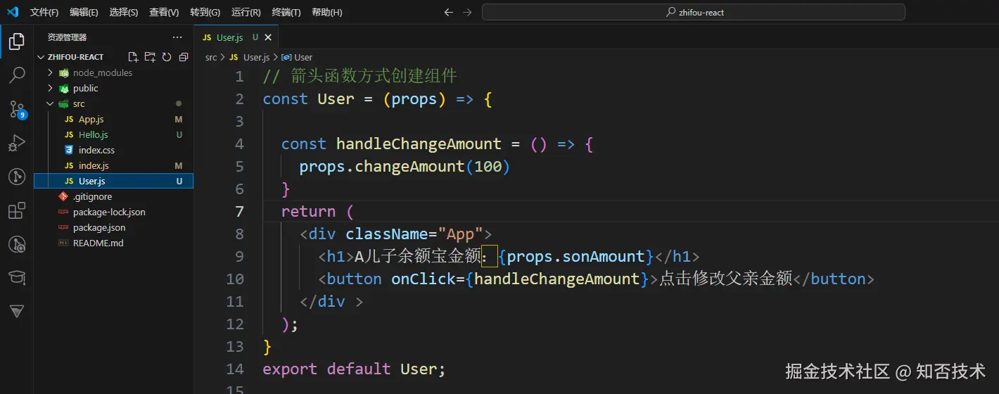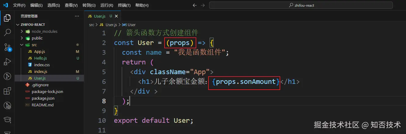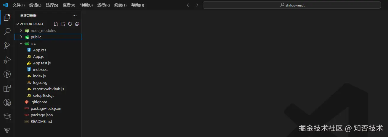 接着用 vscode 打开刚刚安装的 react 项目文件夹