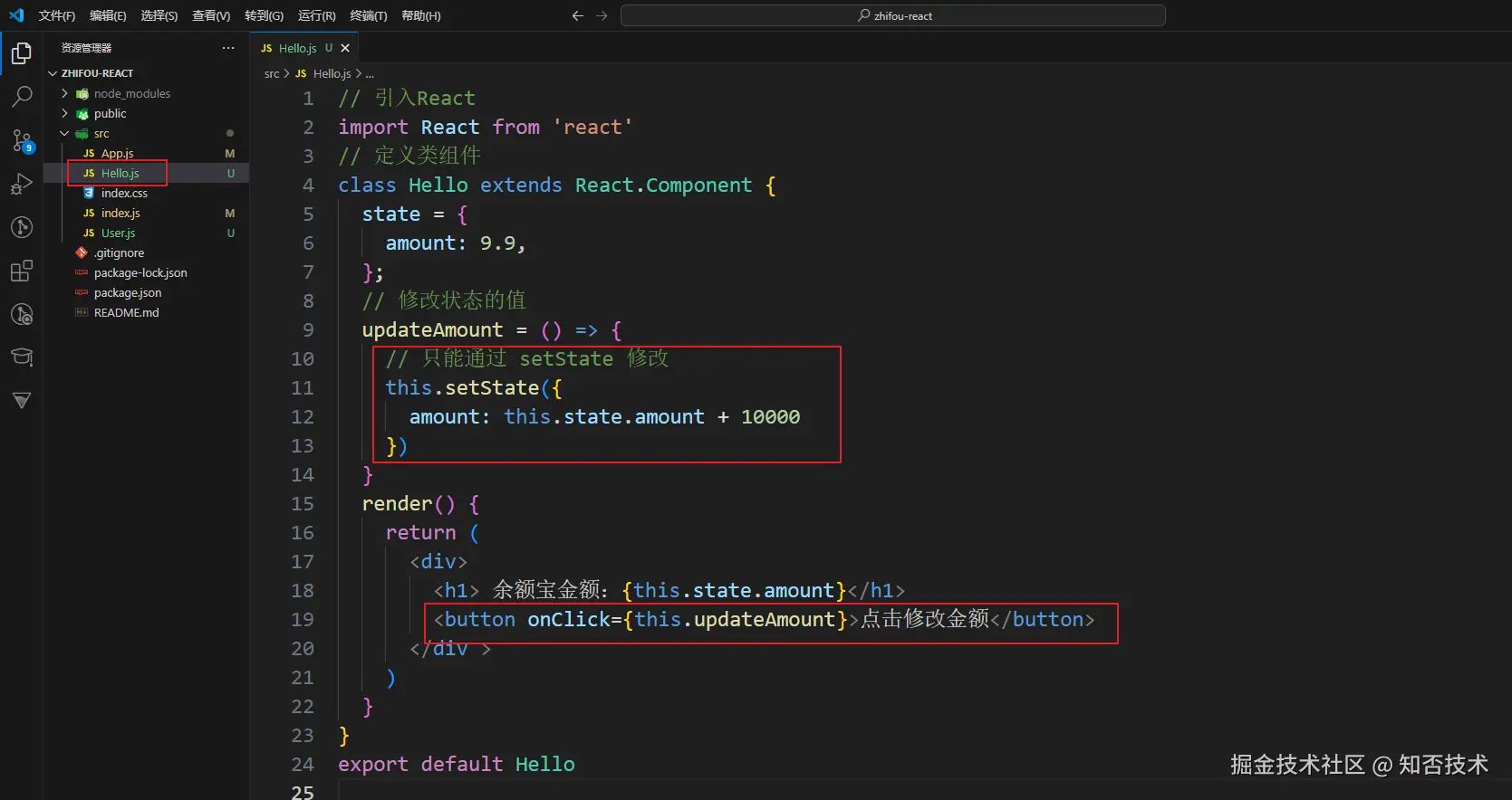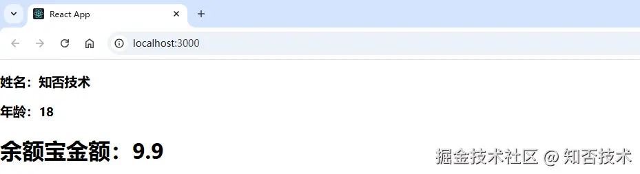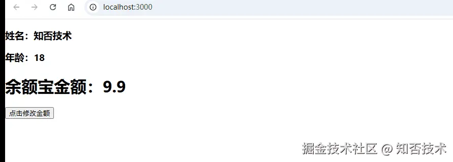 <h1> 余额宝金额:{this.state.amount}</h1>