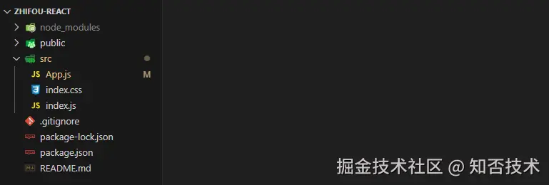 在 src 文件夹下,我们先删除多余的文件,只保留 App.js、index.js、index.css