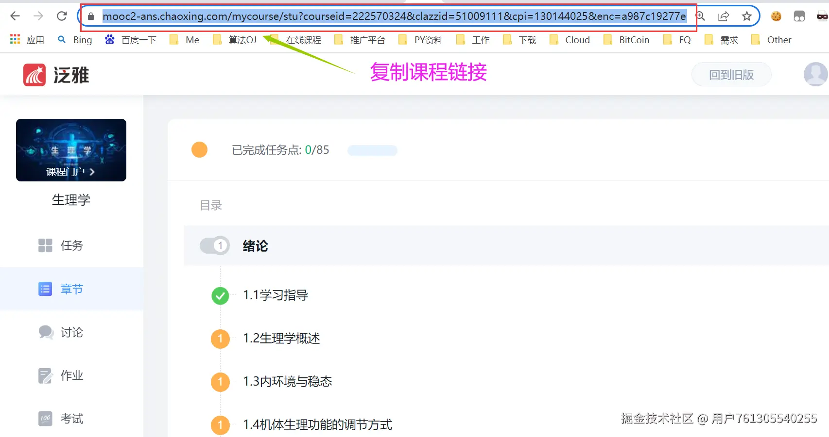 如下图:从超星学习通官网复制对应的课程链接(点此登录超星学习通官网)
