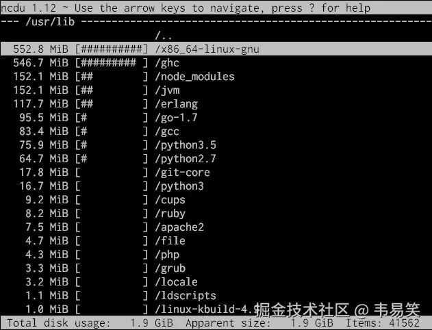 ⚡ ncdu:可视化的空间分析程序