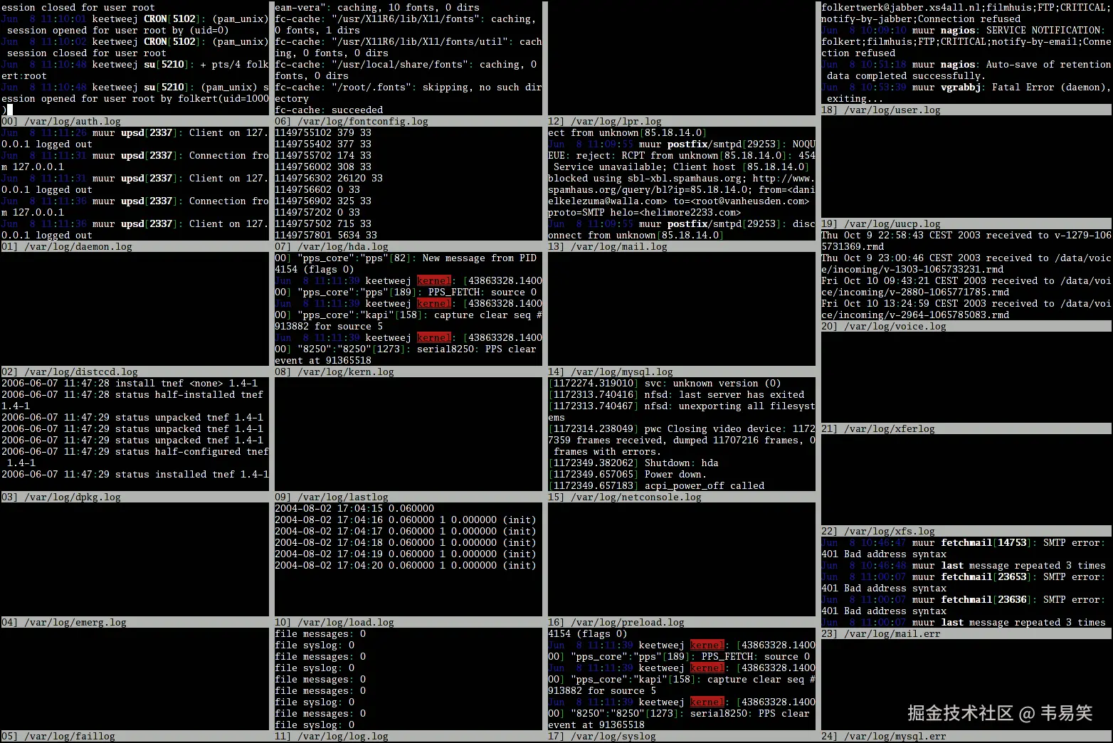 通常你不止一个日志文件要监控,怎么办?终端软件里开多个 tab 太占地方,可以试试这个工具: