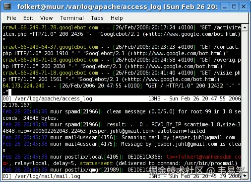 也许你会问,这和 tmux + tail 有什么区别?区别大了,multitail 可以做太多 tmux + tail 做不了的事情了,比如: