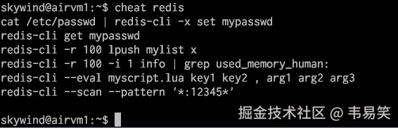 就是各种 cheat sheet ,比如经常搞忘 redis 命令的话,你可以新建 ~/.cheat/redis 这个文件,写一些内容,比如: