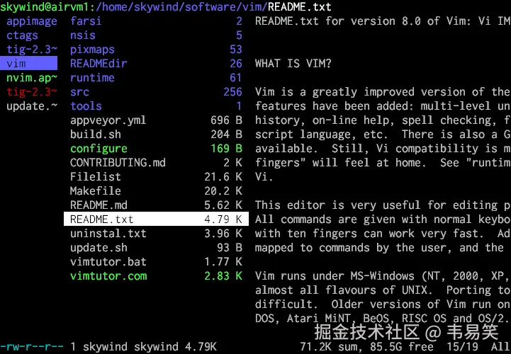 另一款内容预览软件,界面没有 mc 那么漂亮,标记拷贝也没它强,但是预览功能做的很不错,如果你习惯 vim 键位的话,你会发现 ranger 有些地方比 mc 顺手不少: