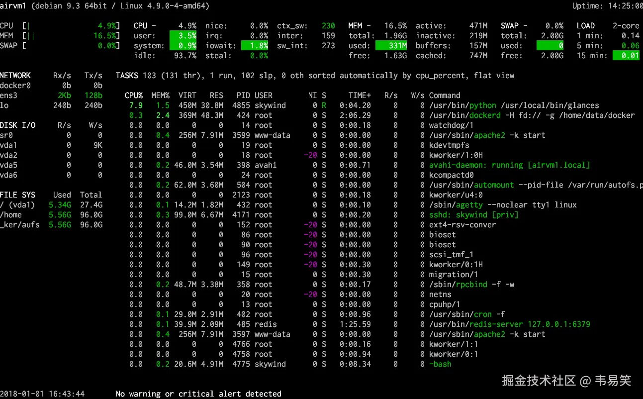 ⚡ glances:更强大的 htop / top 代替者