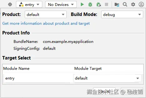 每一个Module都可以设定自己的源码目录,资源目录,运行的设备,分发规则等等,我们将这些行为定义成一个Target,不同的Target可以有不同的行为。每一个Target都需要配置应用到哪些Product中,这样就建立了Product与Target的关联关系。