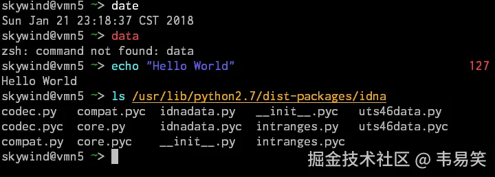 细心的人会发现非零的错误码,也会高亮显示在最右边(上一条 data命令错误,返回127)。