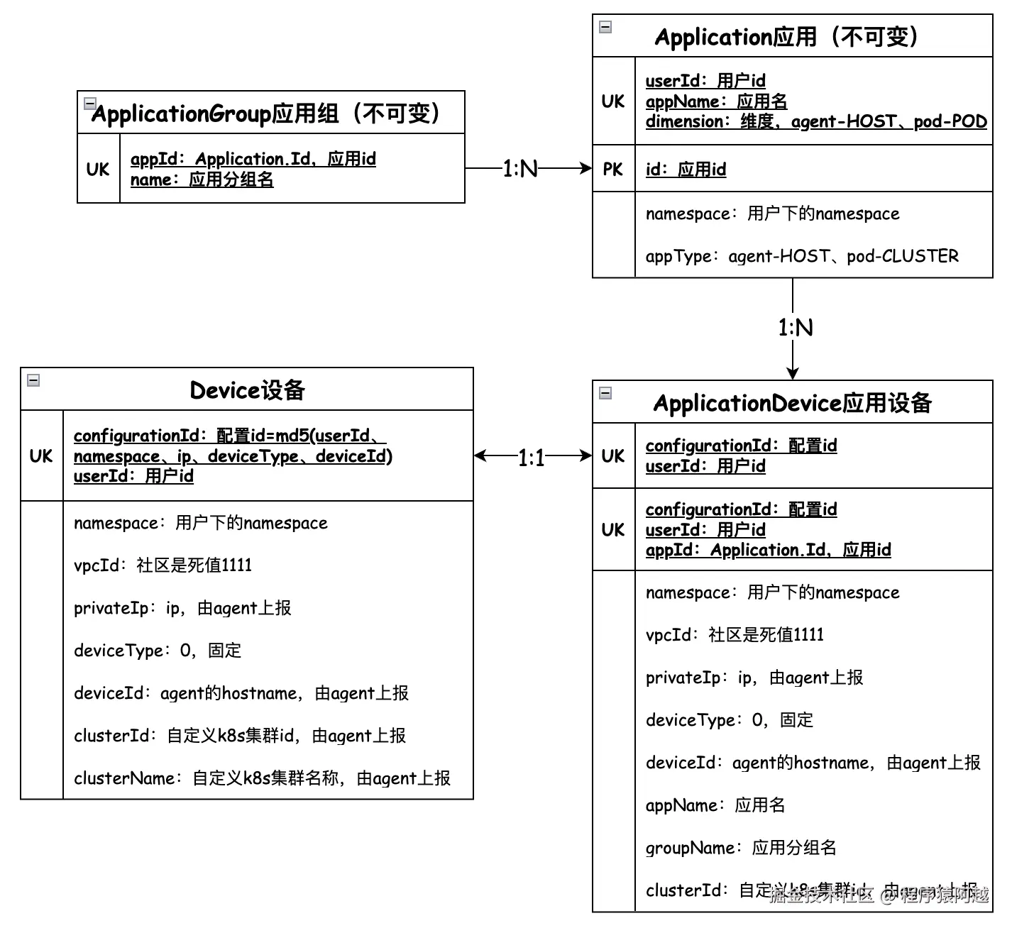 注册后设备和应用的关系如下。