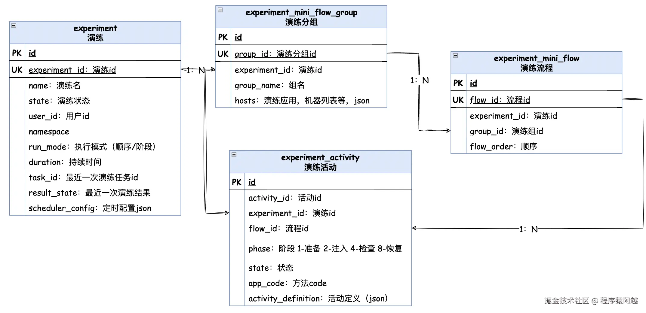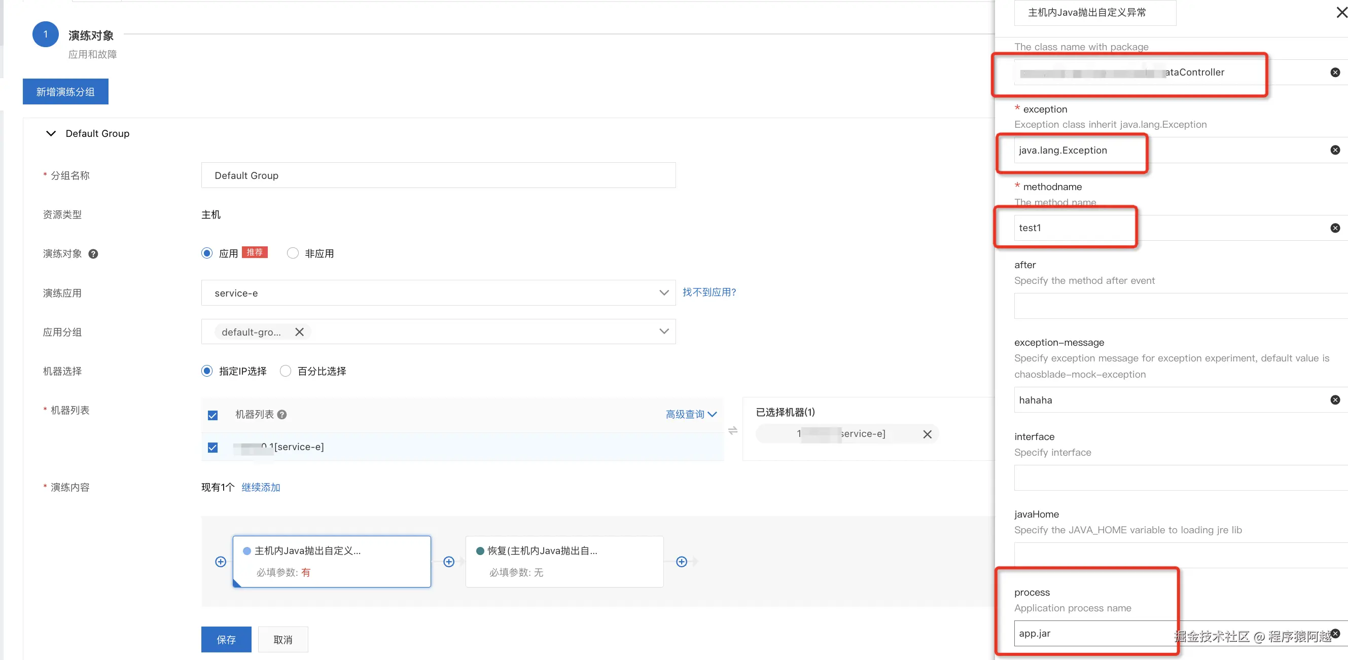 演练活动(experiment_activity) :每个活动对应一个方法(function)的运行模板,包含运行时的参数,如process=app.jar。