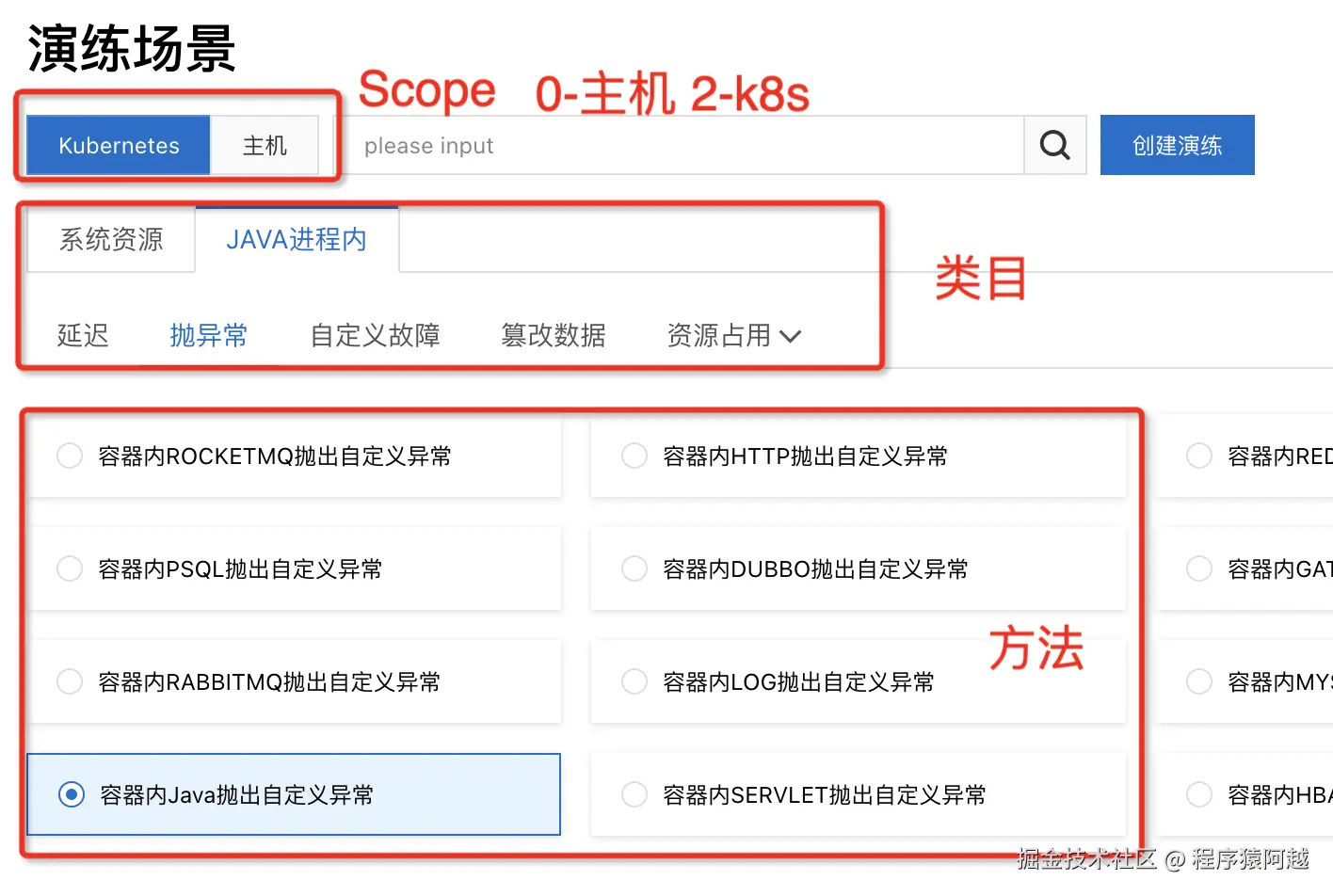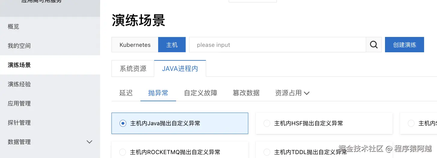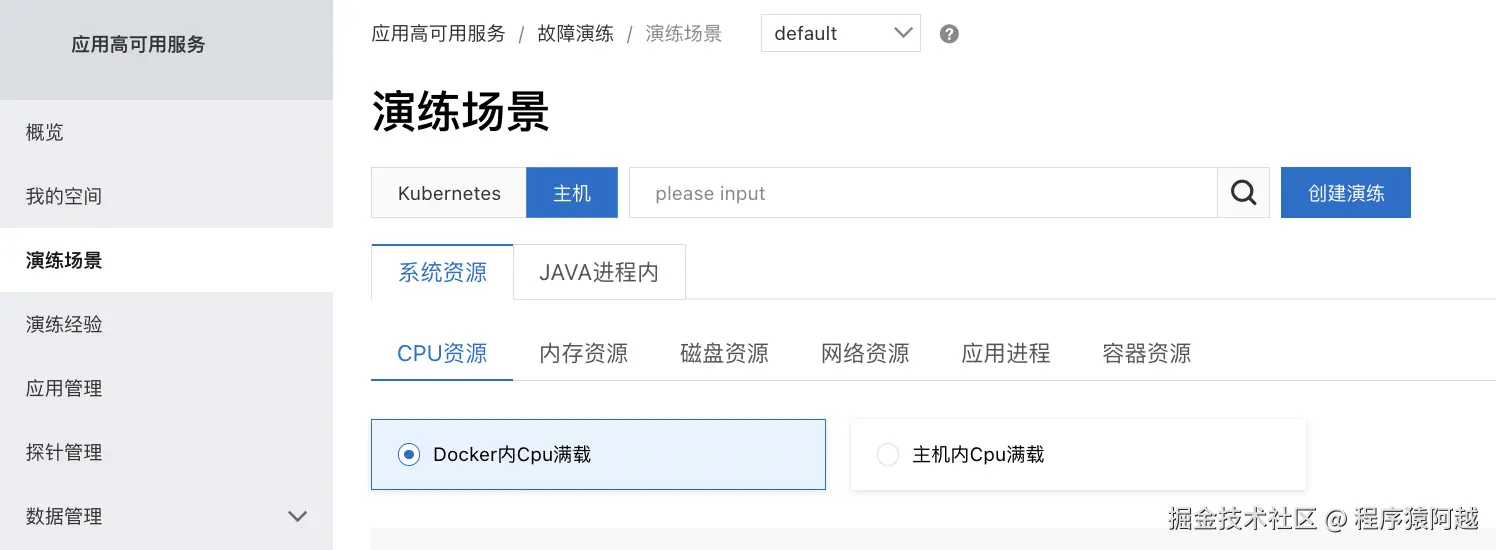 选择资源类型=Kubernetes发起演练。
