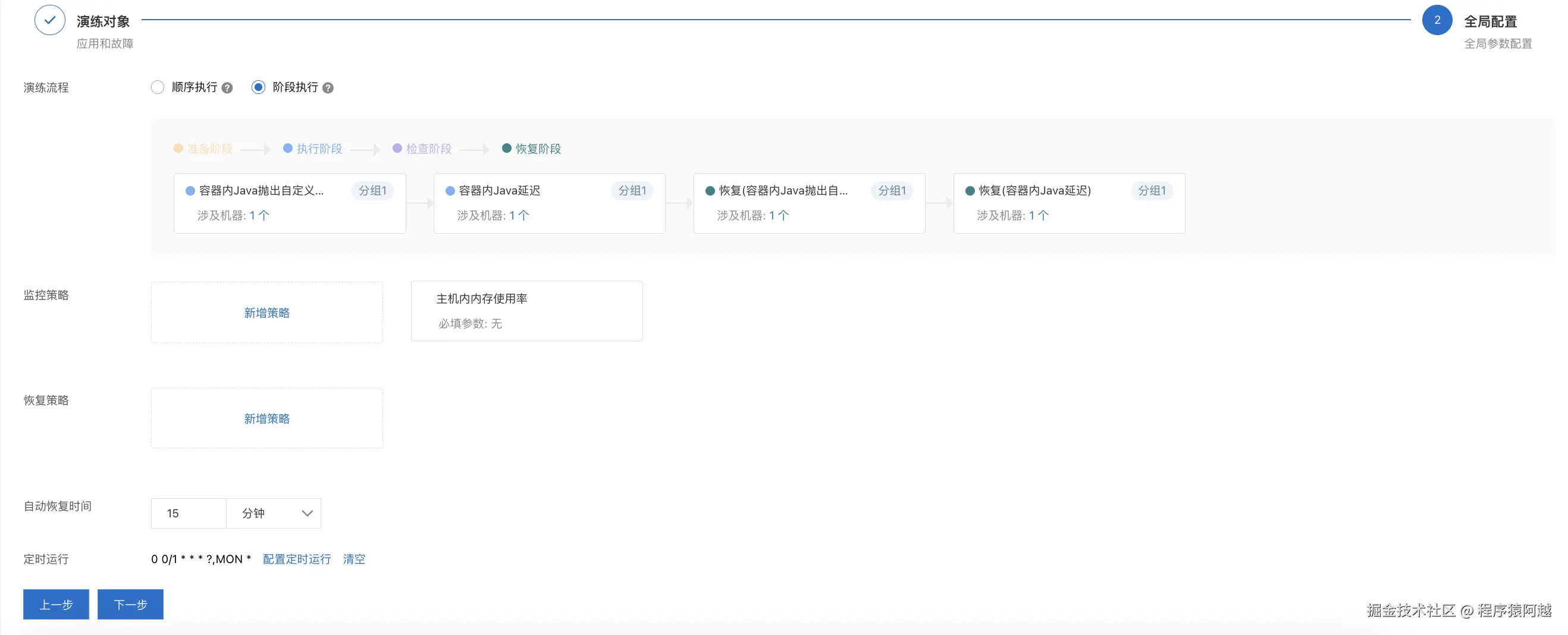 演练任务默认15分钟自动恢复: