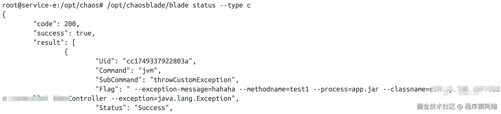 2)agent:拼接blade执行/opt/chaosblade/blade create jvm,返回json结果;