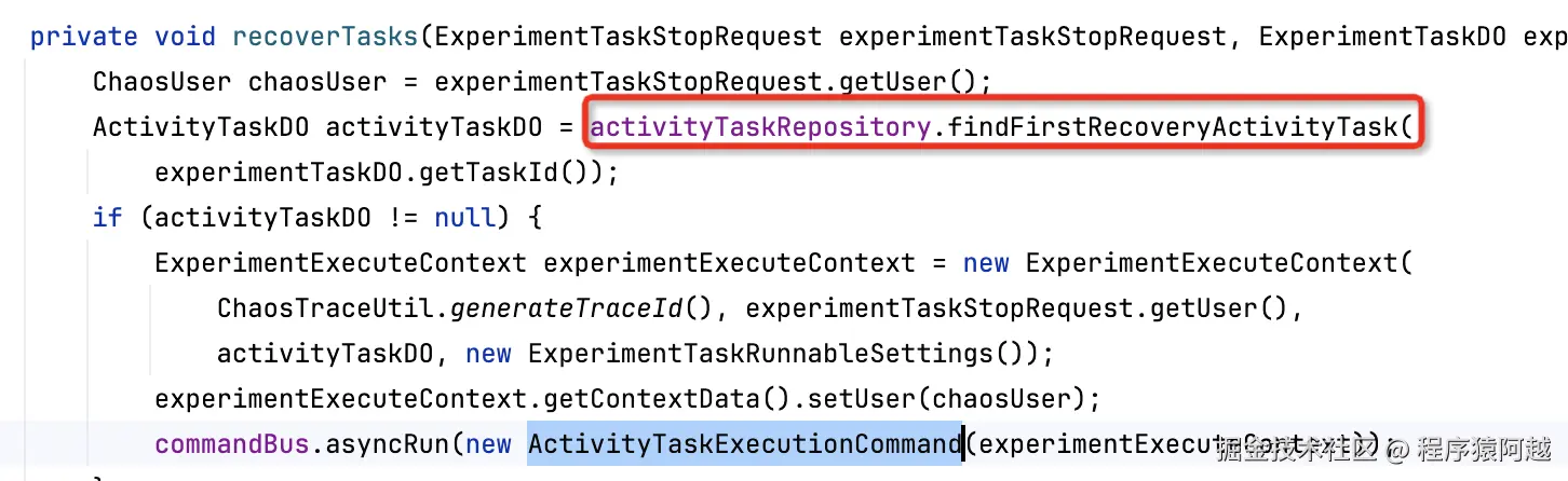 ExperimentTaskStopCommand#recoverTasks:找到第一个recover活动任务,还是提交ActivityTaskExecutionCommand异步执行。