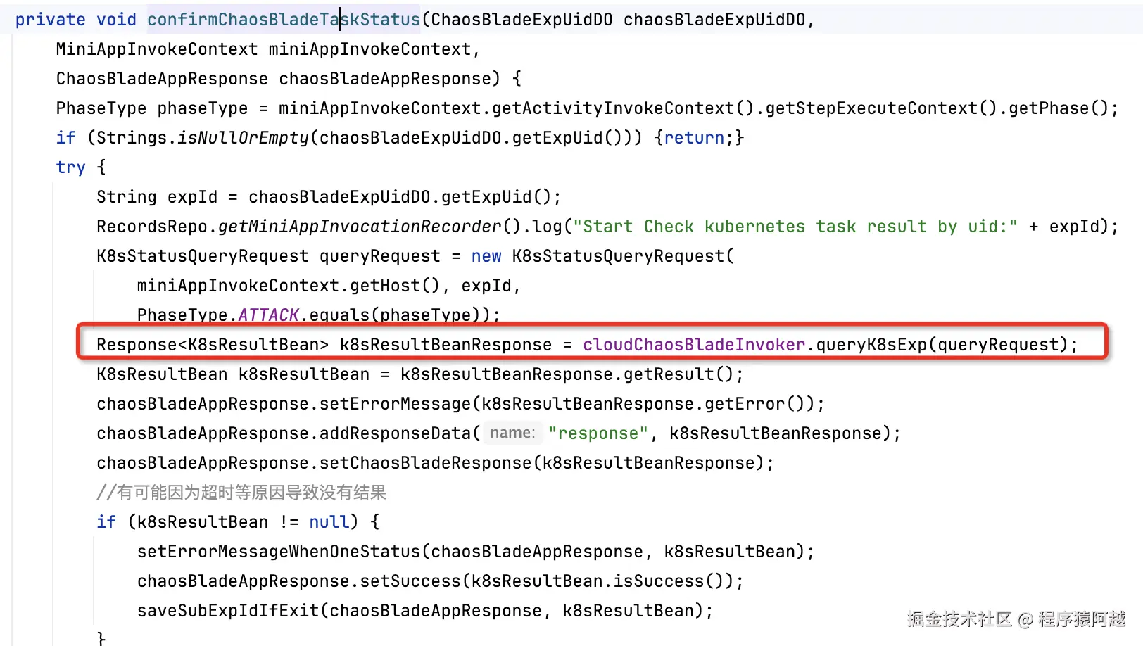 如果是k8s探针,MiniAppChaosBladeInvokeInterceptor会查询当前活动任务执行机器的最近一次blade实验id(即首次blade实验id),调用agent反查实验状态。