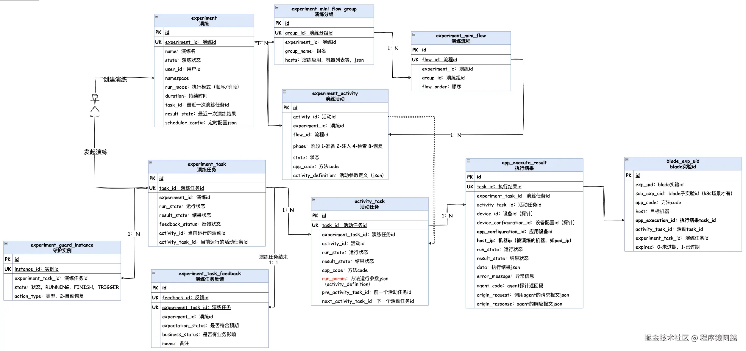 演练(experiment) :包含全局配置(执行模式/超时时间等)和当前状态,一个演练包含多个分组。
