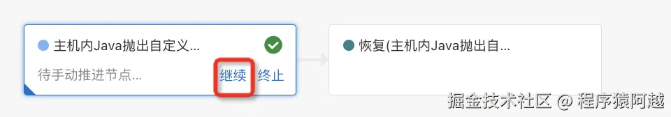 继续节点,进入恢复流程。