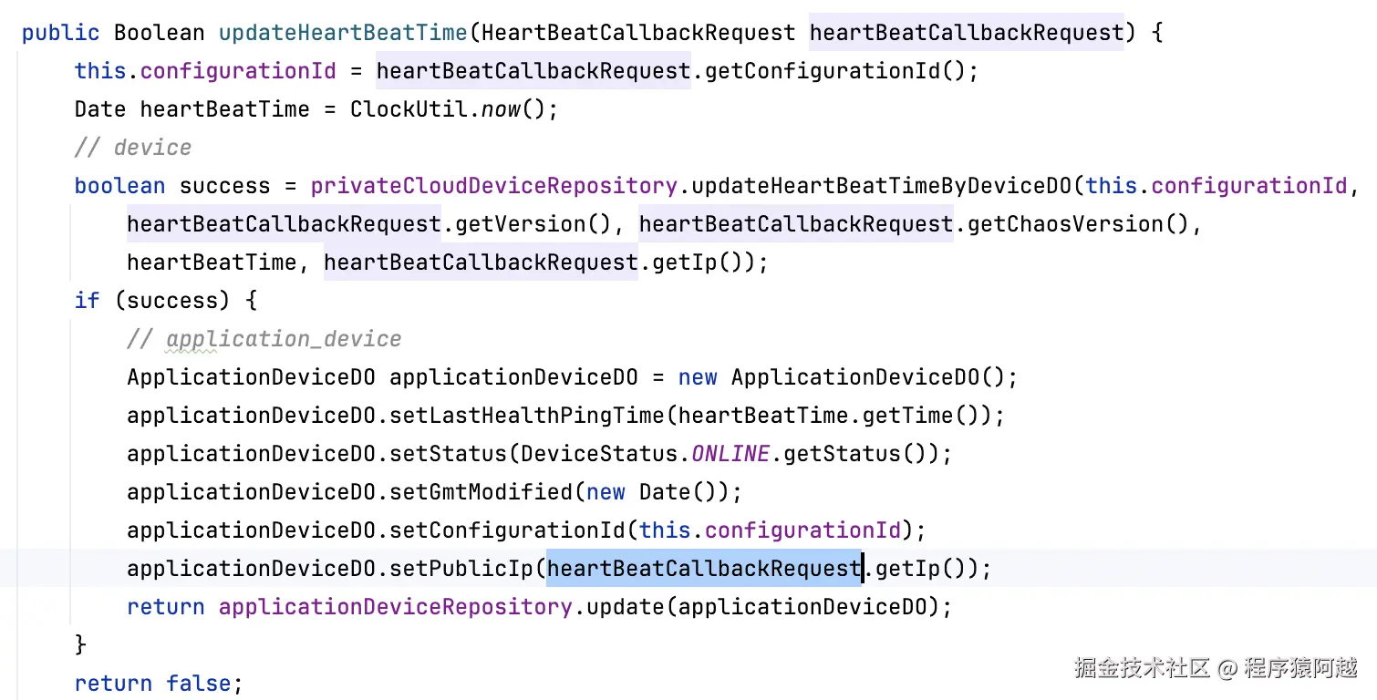 PrivateScope#updateHeartBeatTime:box侧根据设备配置id(cid)更新device和application_device上线,记录最近心跳时间。