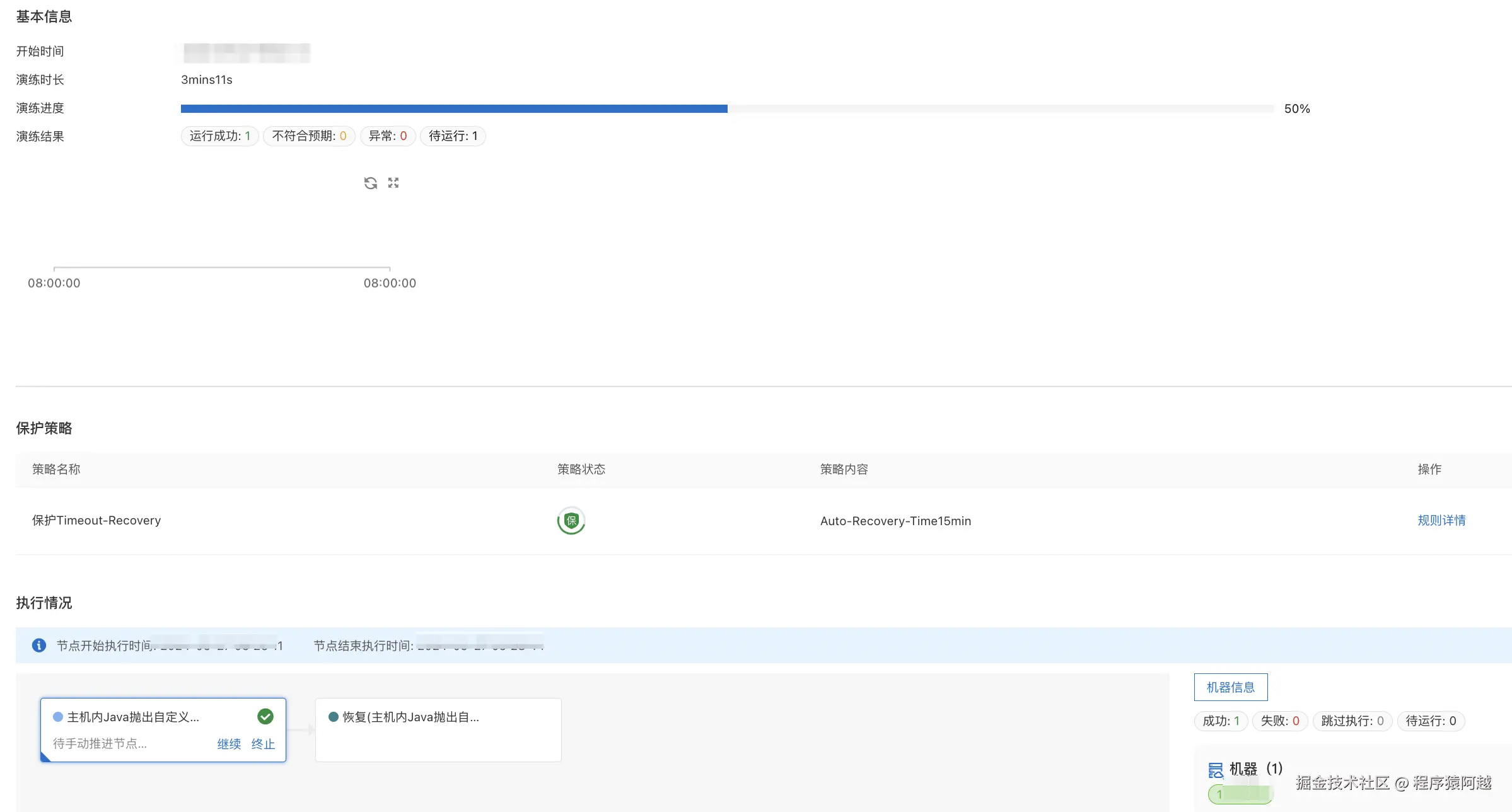 配置实验默认会设置15分钟自动恢复的保护策略,当到达时间后自动终止实验任务。