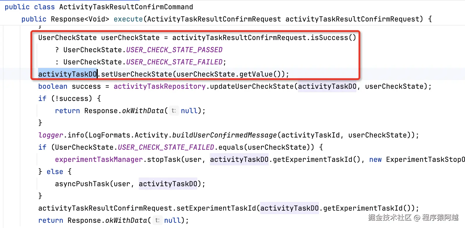 ActivityTaskResultConfirmCommand#execute:更新活动任务的用户check状态=继续或终止。