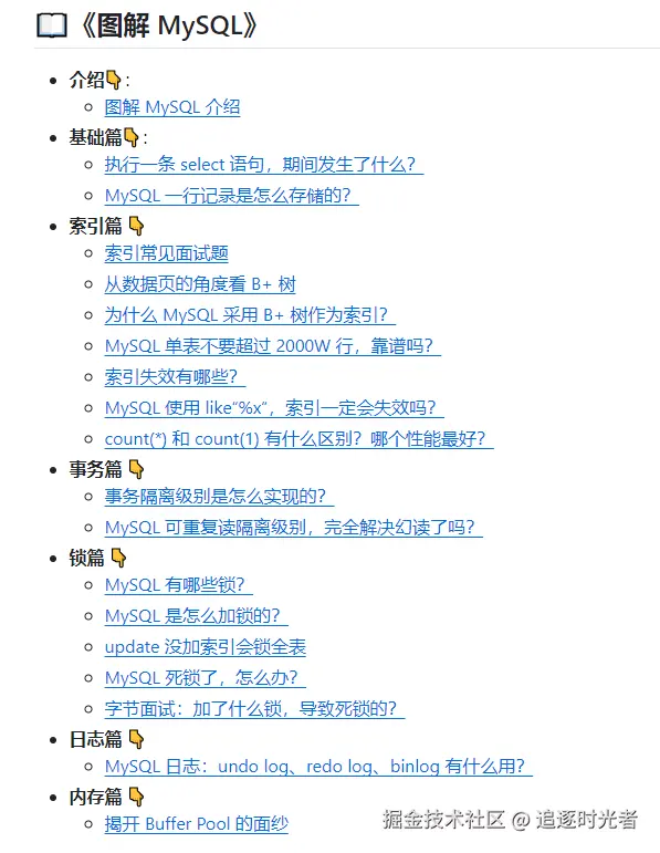 - 架构篇: 主要面向高级数据库管理人员和数据库架构设计师,内容包括MySQL复制、高可用架构、MySQL中间件等内容。