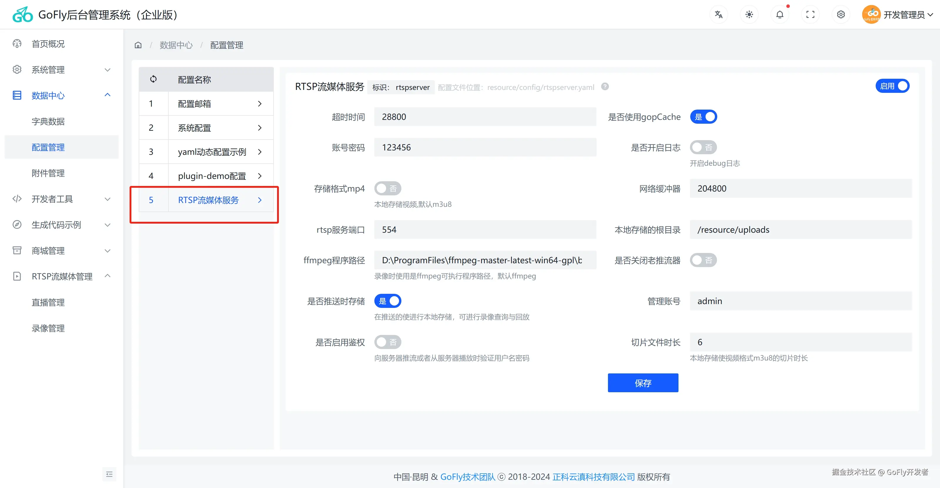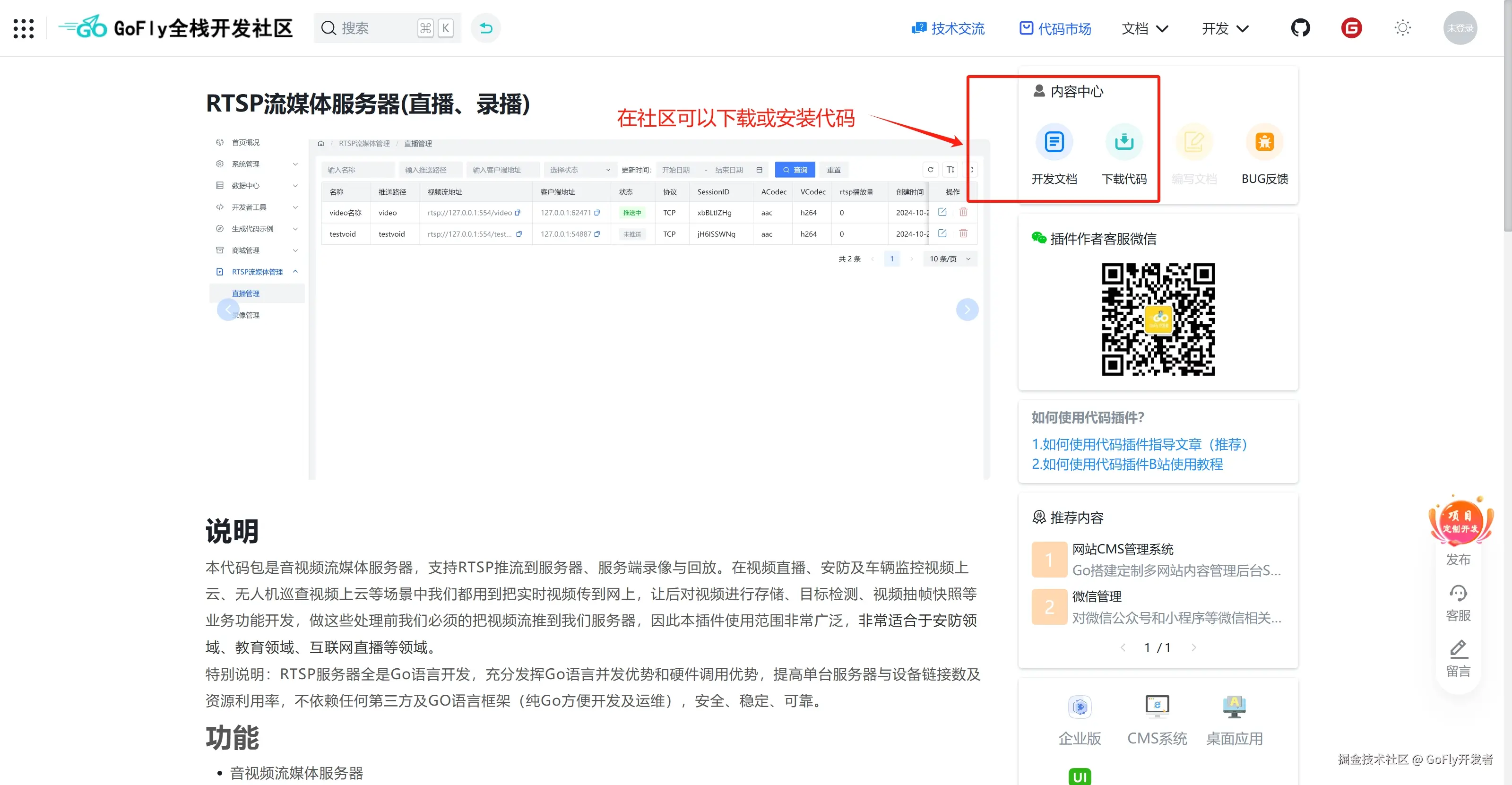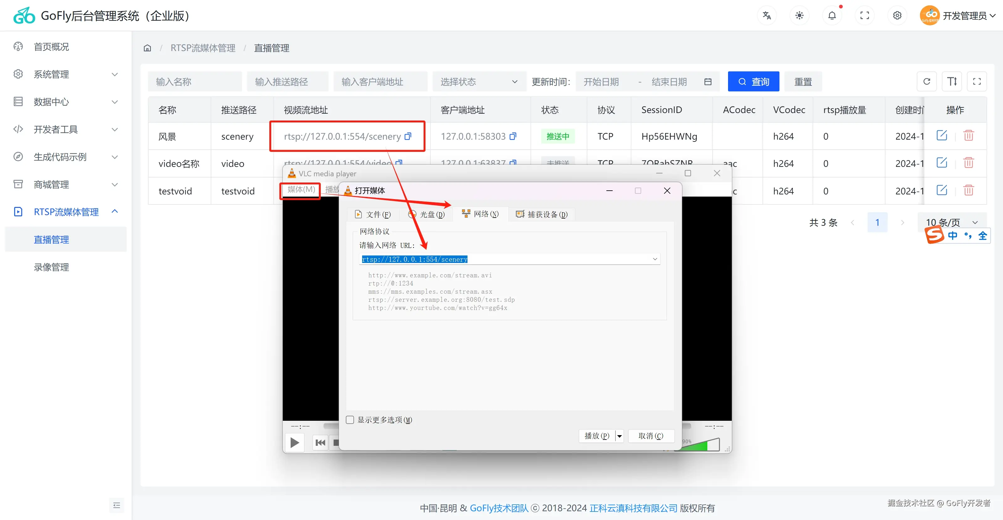 本插件除了在GoFly快速开发框架使用外,我们可以把插件简单改造就可以加入到其他Go开发框架,也可以独立开发成存RTSP功能服务器,我们集成到的GoFly管理后台是方便和其他业务统一管理。